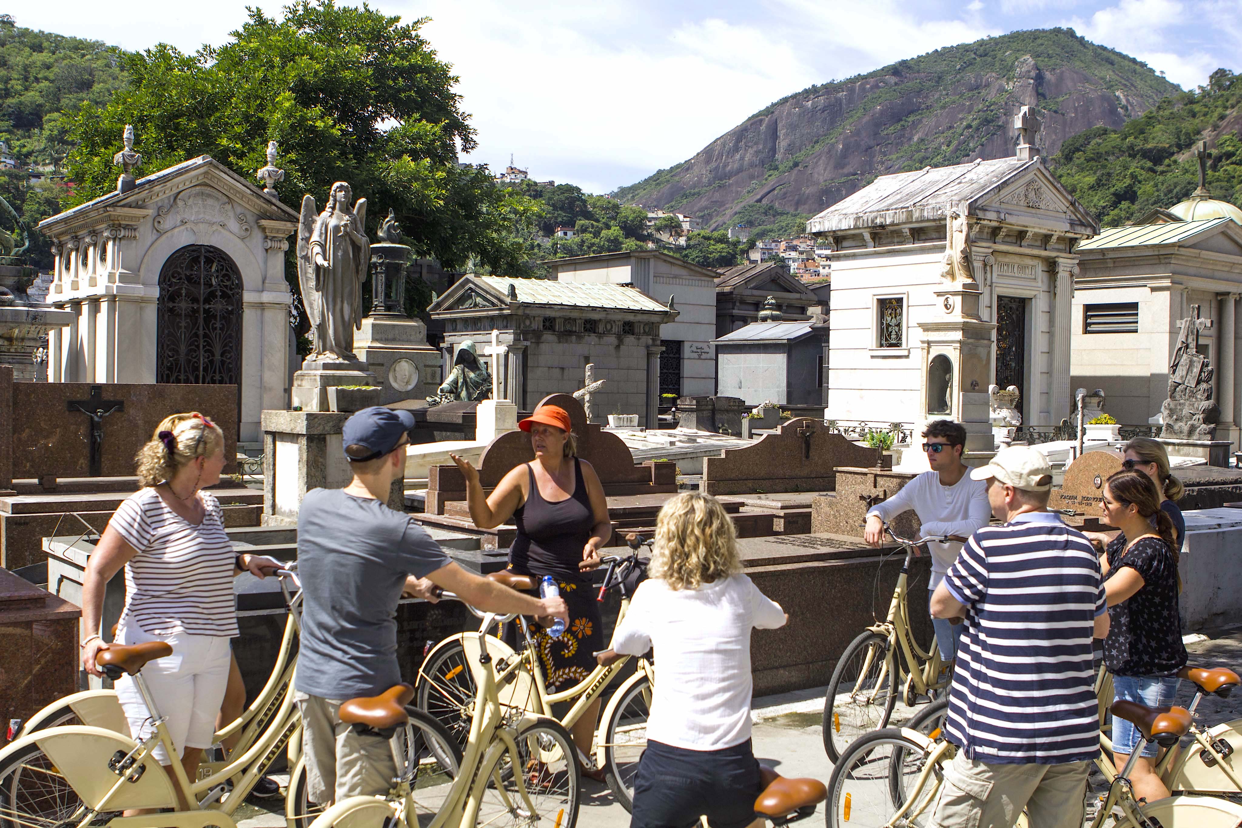 Before hopping on our bikes, we will brief you on safety in traffic, the route we'll cover of over 15 miles/25kilometers, and the highlights you can expect to see along the way. After the briefing we’ll cycle through the lively backstreets of the Copacabana neighborhood towards our first stop in the hipster quarter of Botafogo; the so-called ‘celebrity’ cemetery of São Jão Batista.