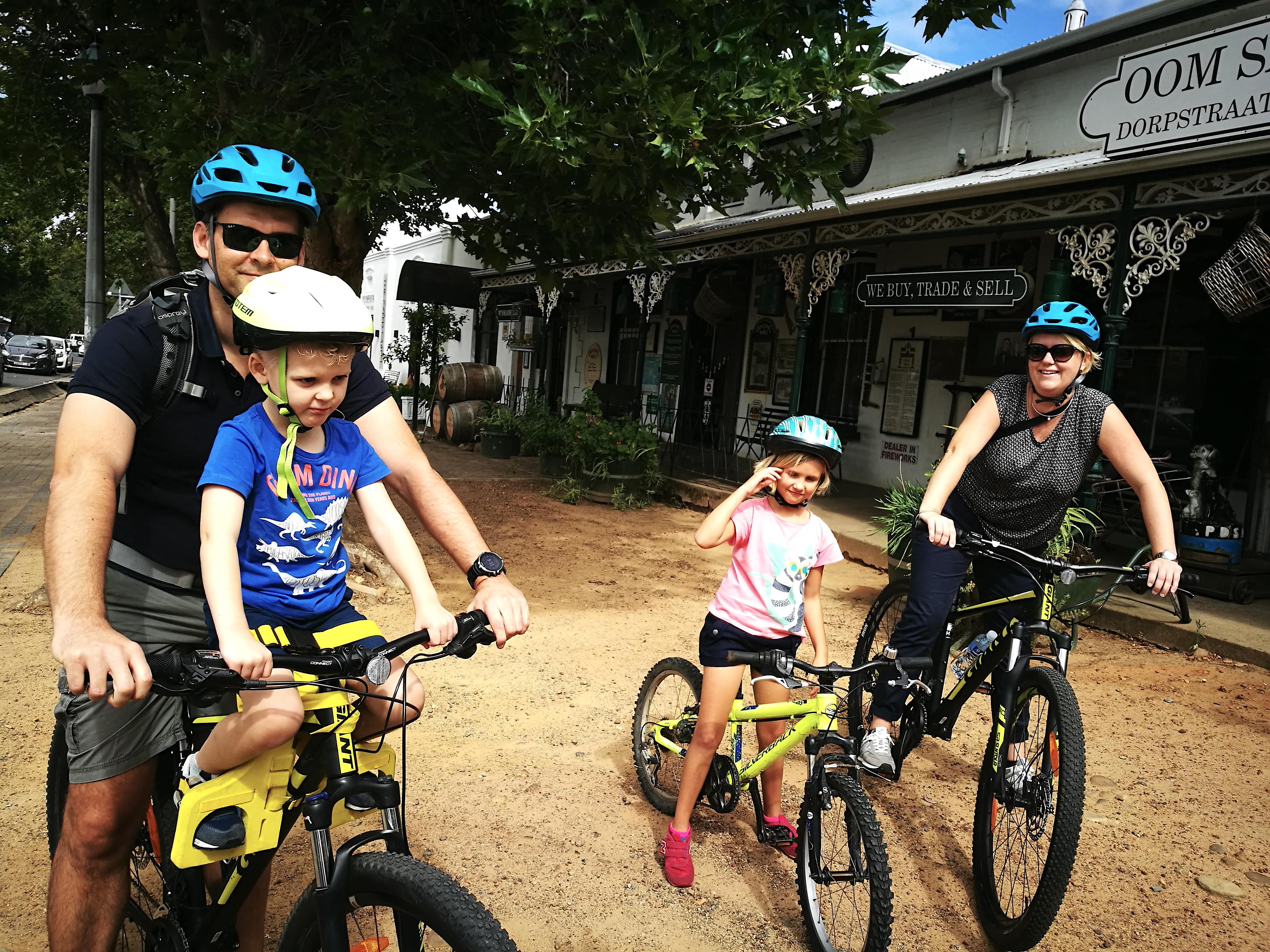 Yes! We have 2, 20" frames available plus a single-wheeled tag along bike or we can arrange for buggies (rental fee of R450) that can seat up to two children. Let us know in the notes of your booking what you prefer and we'll be happy to arrange it for you. Wine tastings will include substitutions for children.